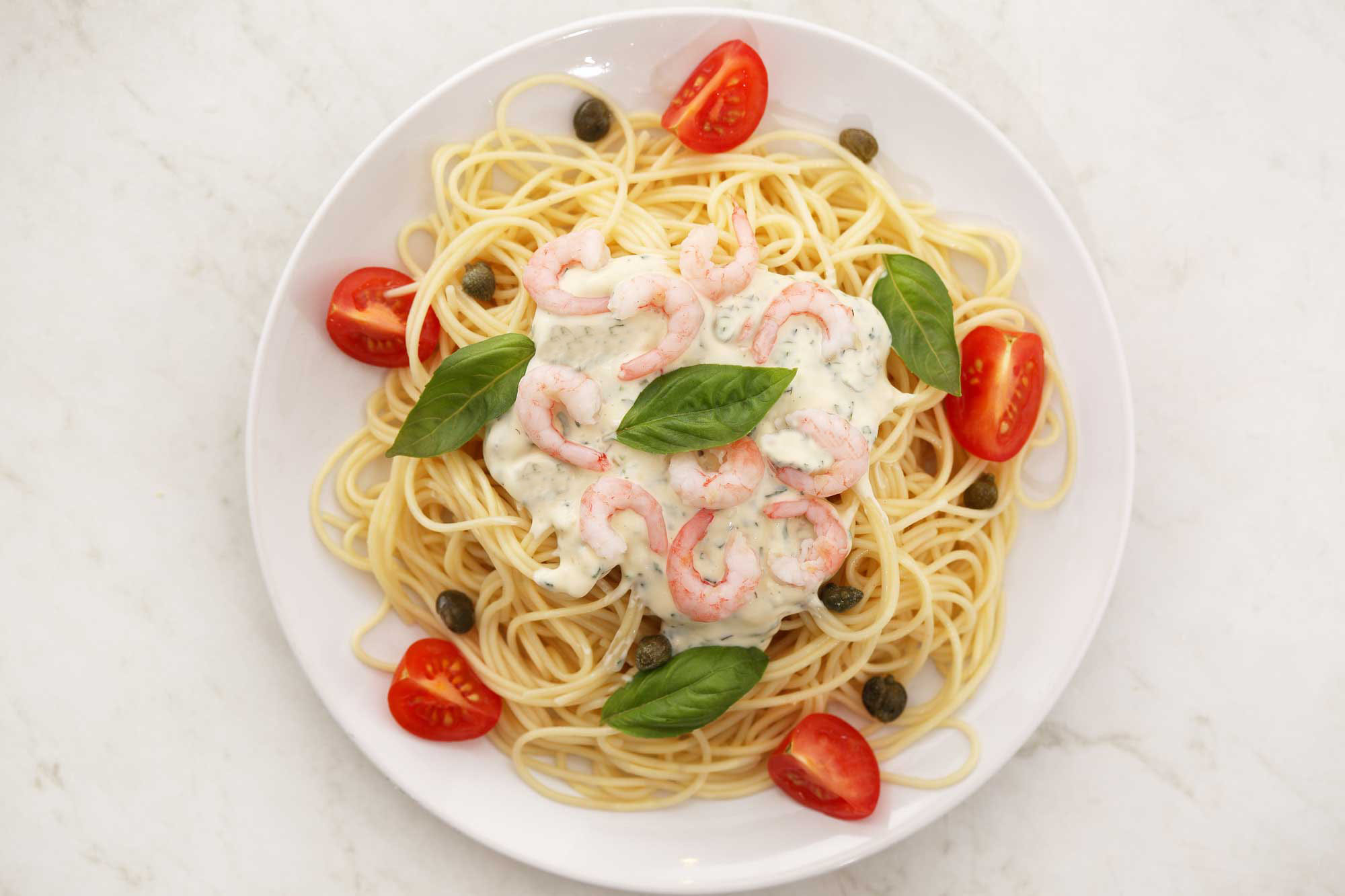 Published 3 april, 2017 at 2000 × 1333 in Krämiga räkor med pasta och pak choi