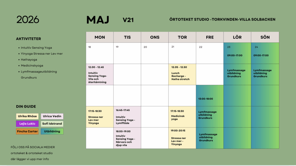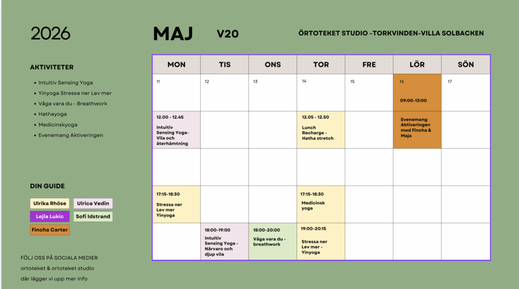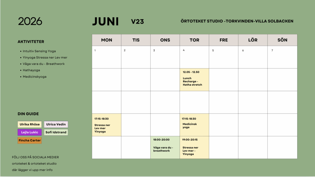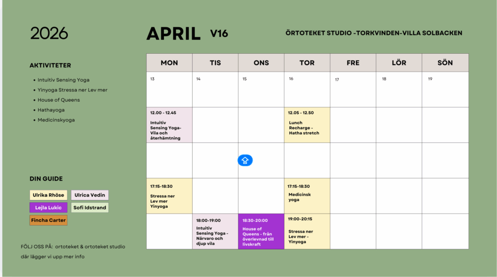Under april prova på… Yoga 190 kr, House of Queens & Röd Ros & Vilda Rötter 190kr, Breathwork 350 kr,